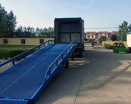 移動式登車橋是與叉車配合使用的貨物裝卸輔助設備,可根據汽車車廂的高低調節高度,叉車可以直接通過本設備駛入車廂內部進行貨物的批量裝卸,僅需單人作業,即可實貨物的快速裝卸。它使企業減少大量勞力,提高工作效率,獲取更大經濟效益。