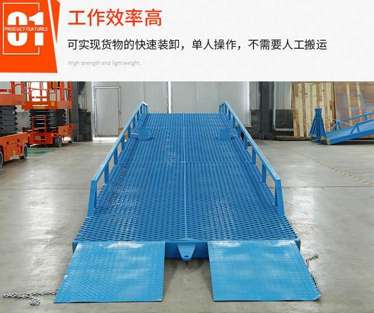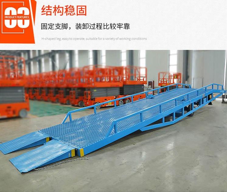 濱州登車橋-移動式登車橋-固定式登車橋-安徽液壓登車橋主要技術指標:大動負載:6T大靜負載:6T大寬度:2M大長度:4M電動液壓式法國進口組裝登車橋用途登車橋移動登車橋移動式液壓登車橋廣泛用于無裝卸設備的貨臺及流動裝卸場所,是與叉車配合使用的貨物輔助設備。